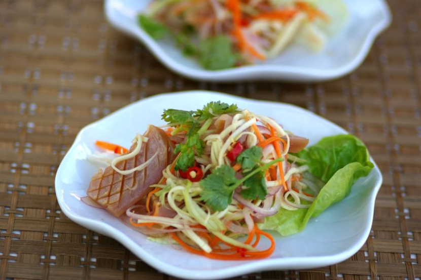 RESTORAN masakan ala Thailand sememangnya bak cendawan tumbuh selepas hujan. Ini kerana kebanyakan masyarakat kita begitu menggemari masakan dari negara gajah putih itu bukan saja kerana keenakannya, tetapi rencah yang digunakan sangat ‘kena’ dengan citarasa. ARTIKEL BERKAITAN: Mudah, sihat dan mengenyangkan! Jom cuba buat snek granola bar sendiri di rumah Jika anda perasan, kebanyakan menu dari Thailand menggunakan sos ikan sekaligus menjadikan sesuatu hidangan itu ‘terangkat’. Sering kali menikmati masakan di restoran, apa kata kali ini anda cuba resepi yang mStar kongsikan kali ini iaitu salad sotong ala Thai. Antara bahan untuk penyediaan salad sotong. Bahan-bahan: Sotong kembang 1 biji bawang besar (dihiris) 50 gram mangga muda (dihiris) Sedikit daun ketumbar (dihiris) 3 tangkai cili kering (digoreng) Perasa 2 sudu jus limau nipis 1 tangkai cili merah (dihiris) 1 batang serai (dihiris) 1 sudu minyak bijan 1 ½ sudu sos ikan Sedikit gula Cara- cara membuatnya: 1) Celur sotong dan kemudian potong kecil. 2) Campurkan bahan-bahan perasa (sos ikan, minyak bijan, jus limau, perasa, gula) ke dalam mangkuk besar dan kacau hingga sebati. 3) Masukkan sotong, bawang besar, mangga muda, daun ketumbar, serai, cili merah dan gaul hingga sebati. Taburkan cili kering yang diramas. Sedia dihidang. - KUALI