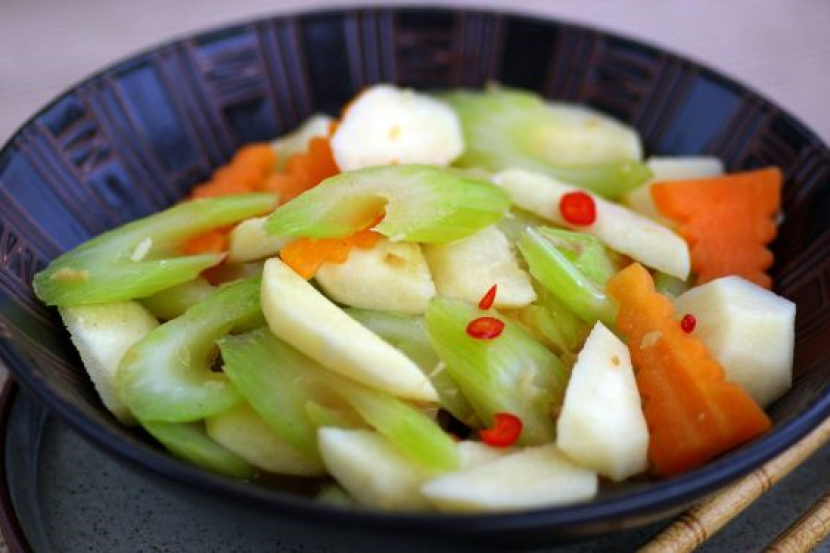 BERSEMPENA dengan tahun baharu ini, pasti ramai yang berkobar-kobar untuk berdiet dan berazam untuk makan lebih banyak sayur! Ha! Apa kata cuba resepi saderi goreng ini. Ia kaya dengan pelbagai vitaman termasuk vitamin A, vitamin C dan vitamin K serta folate dan potassium. ARTIKEL BERKAITAN: Dengan sedikit kreativiti, oat boleh jadi hidangan paling menyelerakan! Paling penting nak buat pun mudah, tak sampai 10 minit! Bahan-bahannya: 2 batang saderi 4 biji arrowroot head (nga ku) 50 gram lobak merah dipotong halus 1 sudu makan halia kisar 1 sudu makan bawang putih kisar 1 sudu makan minyak bijan 1 sudu makan kicap cair 1 sudu makan sos tiram 1/4 sudu makan serbuk perasa sayur Sedikit lada sulah Sedikit gula 100 ml air (Bahan pemekat) 1 sudu tepung ubi 1 sudu air air Cara-caranya: Tumiskan halia dan bawang putih menggunakan minyak bijan sehingga kekuningan. Kemudian masukkan saderi, arrowroot head dan lobak merah yang sudah dipotong. Masukkan serbuk perasa sayuran, kicap cair, sos tiram, dan air. Biarkan ia mendidih selama 2-3 minit sebelum masukkan larutan tepung ubi bagi memekatkan kuah. Perasakan dengan garam, gula dan lada sulah sebelum sedia dihidangkan.