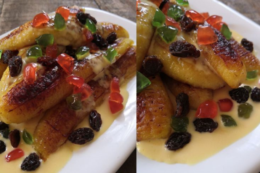 JIKA anda sudah tak tahu nak jamu apa buat keluarga... apa kata cuba resepi puding pisang kastard! Dengar macam susah nak buat tapi sebenarnya ia resepi paling mudah tetapi cukup enak di makan seisi keluarga. Jom cuba resepi yang dikongsi oleh Mas Cotek. ARTIKEL BERKAITAN: Nasi semalam jangan dibuang, boleh buat kek nasi! Bahan-bahannya: A. Bahan pisang berserta mentega 5 biji pisang nangka 3 sudu makan mentega B. Bahan sos kastard 1 tin susu cair 1 cawan air 3 sudu makan tepung kastard 3 sudu makan gula pasir 1/2 sudu makan garam 1 sudu teh esen vanila Sos kastard penyedap puding pisang. C. Bahan-bahan lain Ceri merah Ceri hijau Kismis Cara-caranya; 1. Cairkan mentega, kemudian masukkan semua pisang dan gaul rata (bahan A). Sejukkan dalam peti ais. 2. Satukan semua bahan (B) dan sebatikan. 3. Masakkan semua bahan-bahan itu sehingga sebati menggunakan api perlahan. Pastikan adunan dikacau sehingga pekat. 4. Sejukkan sebelum disiriam ke atas pisang. Taburkan bahan-bahan (C) iaitu kismis, ceri sebagai hiasan.
